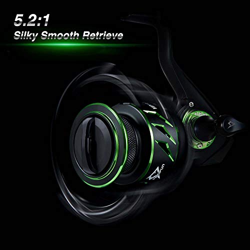 【Powerful Performance】With a reinforced stainless steel main shaft and Zinc alloy drive gear, the Piscifun Viper X spinning reel can handle up to 33lbs of max drag, making it perfect for both saltwater and freshwater fishing.