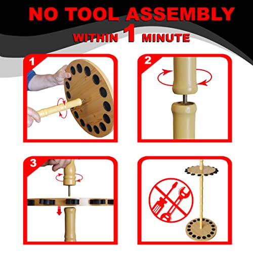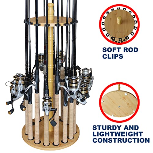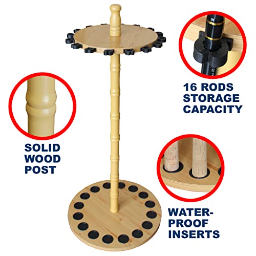 Rush Creek Creations Round 16 Fishing Rod Storage Rack – Features Traditional Handcrafted Wood Post – No Tool Assembly, Wood Grain Laminate